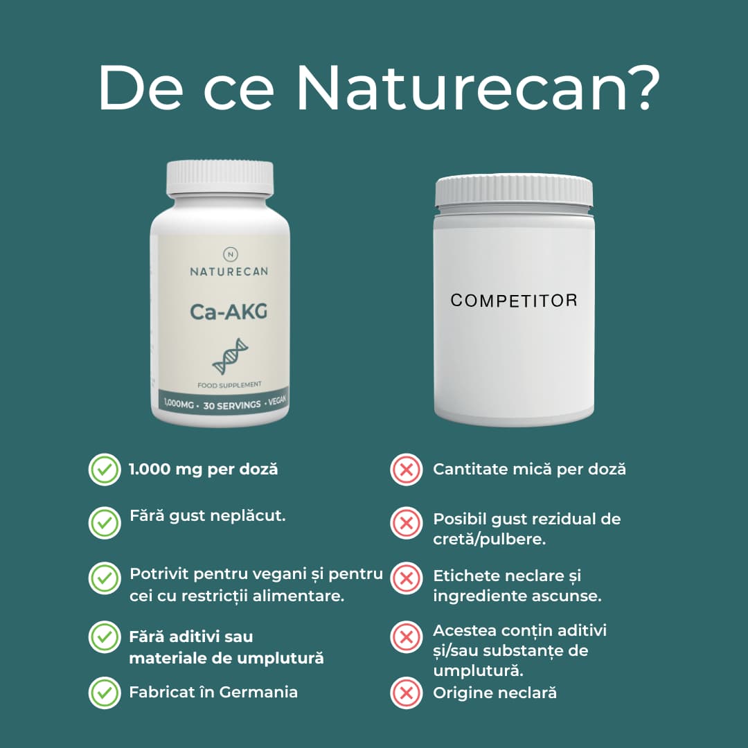 Suplimentul nostru alimentar Ca-AKG este realizat din ingrediente atent selectate, în conformitate cu reglementari stricte de asigurare a calității. Naturecan se angajează pentru produse sigure, eficiente și transparente în care puteți avea încredere.